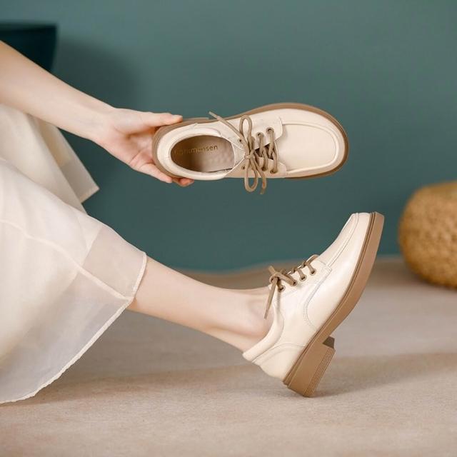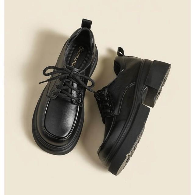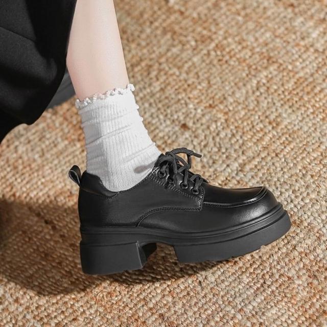 厚底鞋 黑色 鞋帶學院風 全黑皮面 霧皮米駝色 亮皮 高台 5.5公分 休閒鞋 福樂鞋