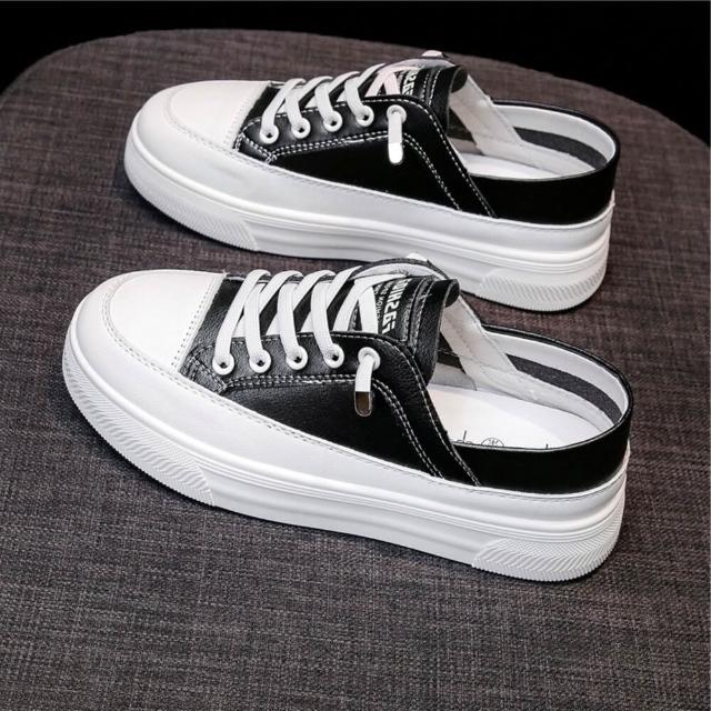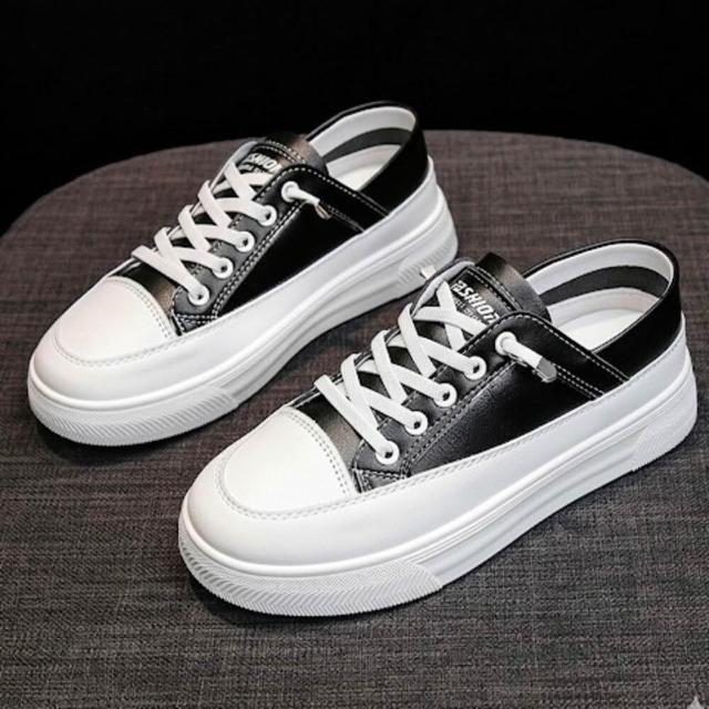 - 小白鞋 皮面黑鞋