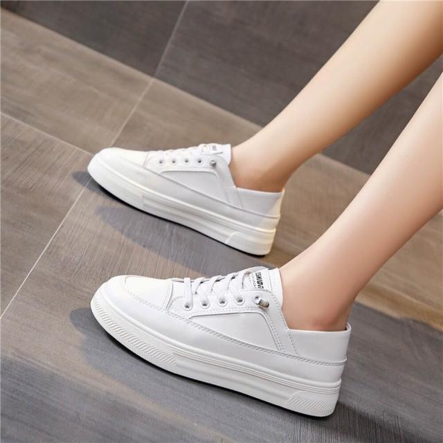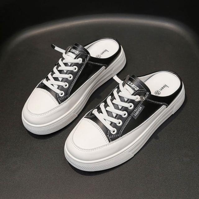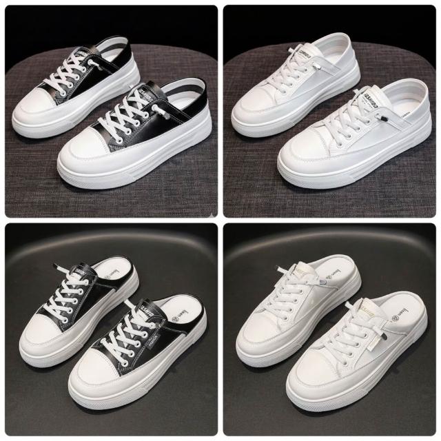 皮面休閒鞋 帆布鞋 防水防滑 小白鞋 黑色 36-40號