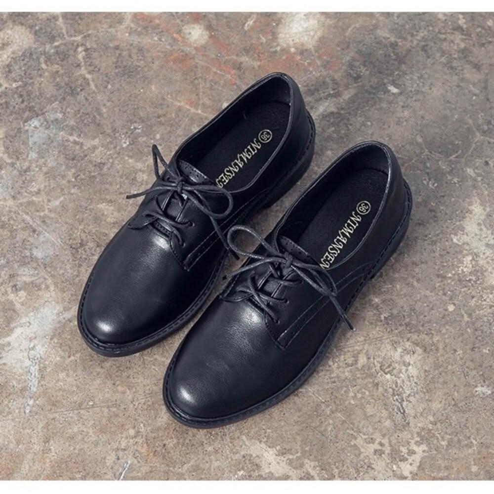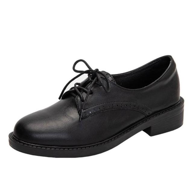 黑色皮面牛津鞋 全黑綁帶皮鞋 防水 學生鞋 工作鞋 女鞋 素面 平底鞋