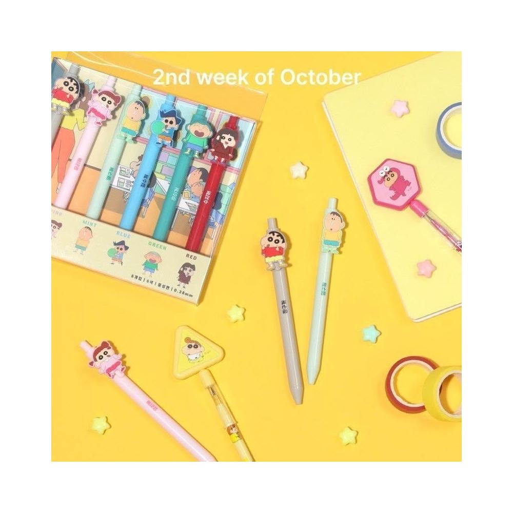 Hello 蠟筆小新韓國 蠟筆小新 6入 中性筆套裝 小新 妮妮 阿呆 風間 原子筆