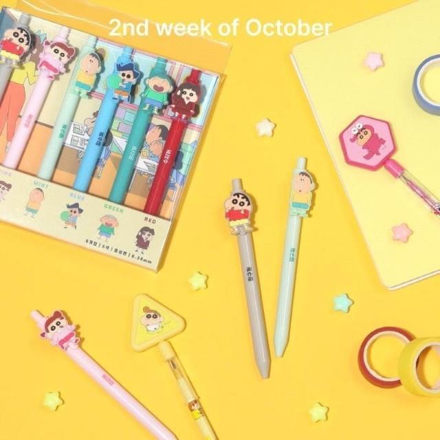 Hello 蠟筆小新韓國 蠟筆小新 6入 中性筆套裝 小新 妮妮 阿呆 風間 原子筆