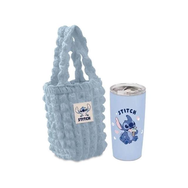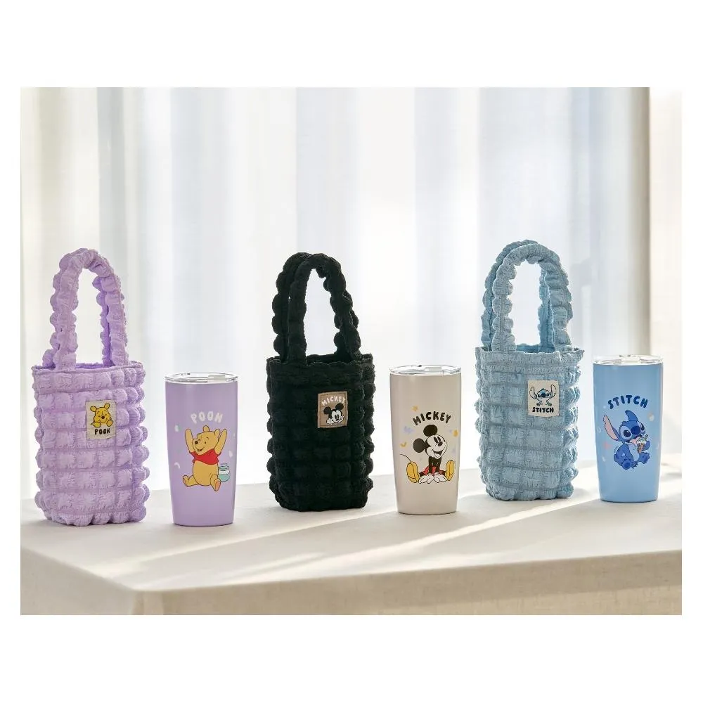 Disney 迪士尼迪士尼 史迪奇 小熊維尼 530ml 萌趣真空保溫杯提袋組 保溫杯 水壺 飲料袋 冰霸杯 保冰杯 飲料提袋