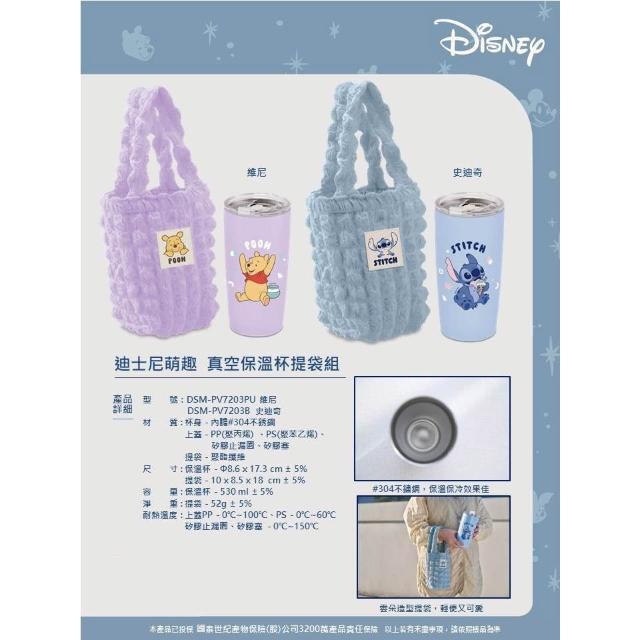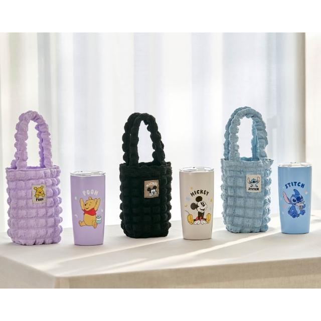 Disney 迪士尼迪士尼 史迪奇 小熊維尼 530ml 萌趣真空保溫杯提袋組 保溫杯 水壺 飲料袋 冰霸杯 保冰杯 飲料提袋