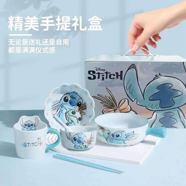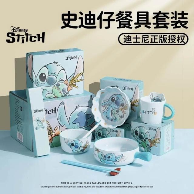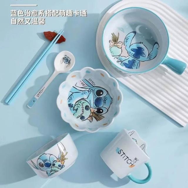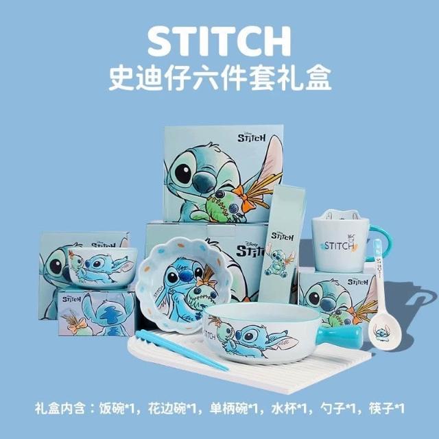 Disney 迪士尼迪士尼 史迪奇 陶瓷餐具六件組 馬克杯 碗 飯碗 碗盤 盤子 醬油碟 沙拉盤 沙拉碗 湯匙 筷子 餐具
