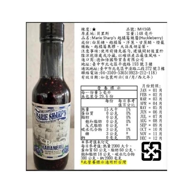 即期出清 夏普奶奶 Marie Sharp's 貝里斯辣椒醬 低卡 零卡 0卡 醬料 辣椒醬 辣椒 沾醬 火鍋 水餃