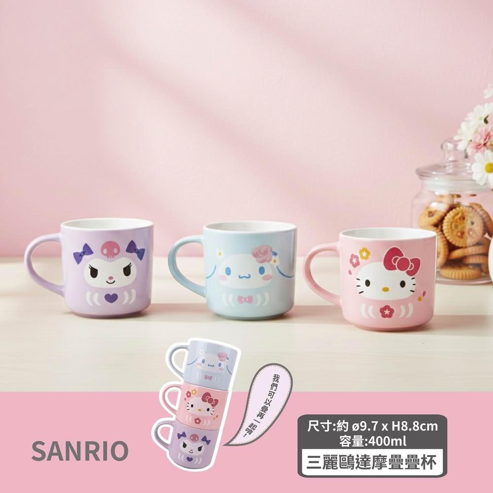 SANRIO 三麗鷗三麗鷗 Kitty 酷洛米 大耳狗 400ml 達摩疊疊杯 陶瓷馬克杯 咖啡杯 水杯 馬克杯