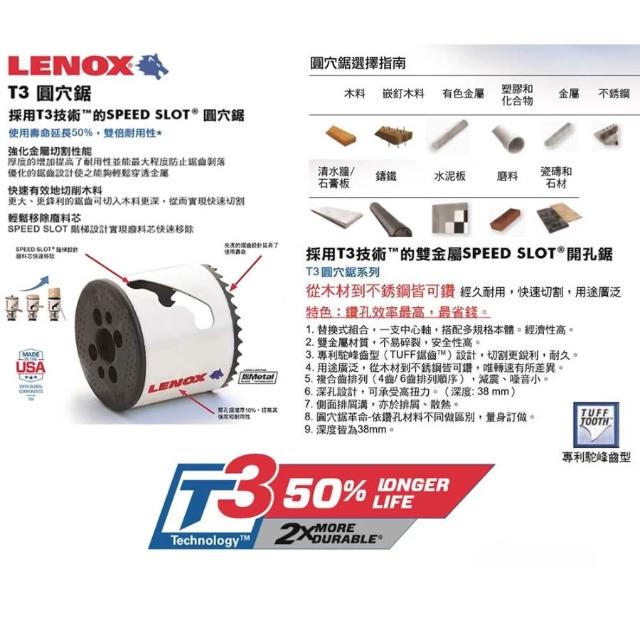 LENOX 美國 狼牌 T3圓穴鑽 單買殼 14-30mm 雙金屬圓穴鋸 金屬木工白鐵不鏽鋼用鑽頭 圓穴鑽尾