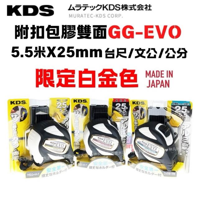 日本 KDS GG-EVO 限定白金色 包膠捲尺 附捲尺快扣 雙面 5.5米 25mm 限定白金色