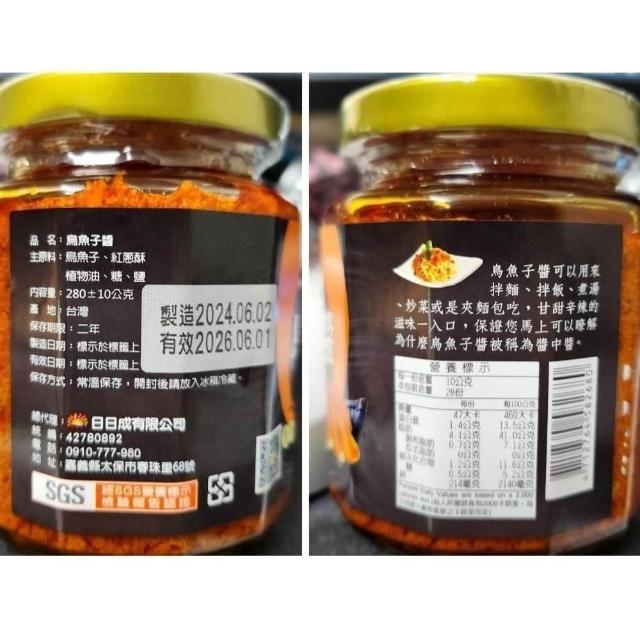 天天免運-日日成頂級烏魚子醬280g/瓶/ 原味 / 香辣 / 2口味可選/烏魚子/烏魚/伴手禮