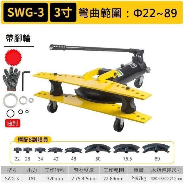 油壓彎管機手動型 油壓不銹鋼彎管器3吋 22~89mm 外徑 鍍鋅管彎管工具 SWG-3 彎管可以自己來 現貨供應