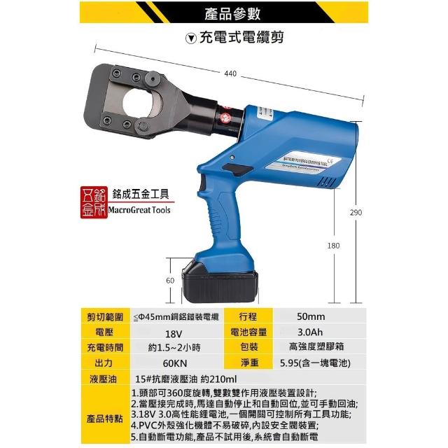 充電式液壓電纜剪 壓線鉗 二合一電動線纜剪+壓接鉗 液壓鉗斷線鉗 兩電一充