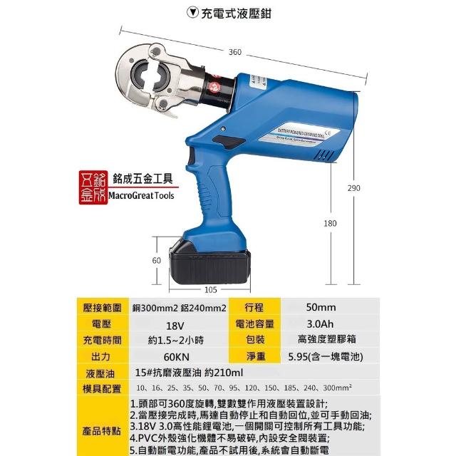 充電式液壓電纜剪 壓線鉗 二合一電動線纜剪+壓接鉗 液壓鉗斷線鉗 兩電一充