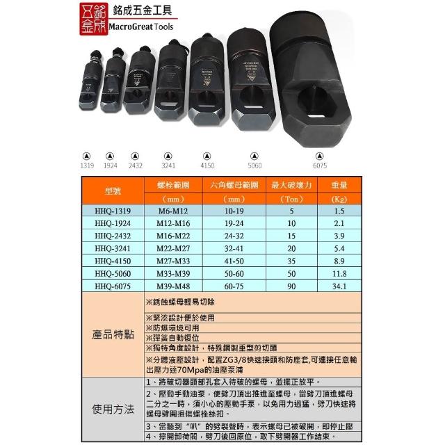 分體式油壓液壓螺母破切器 螺帽生銹切除器 螺帽破開器 破生銹螺帽 NC-3241 4150 5060