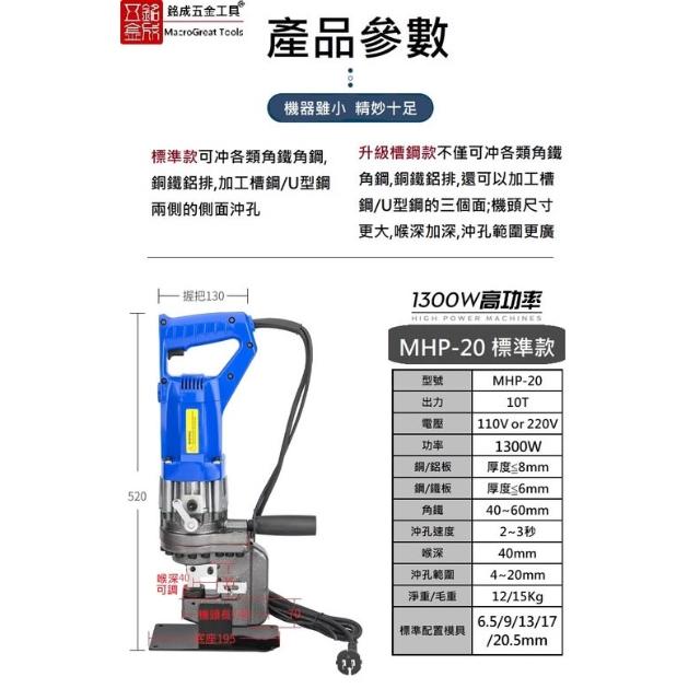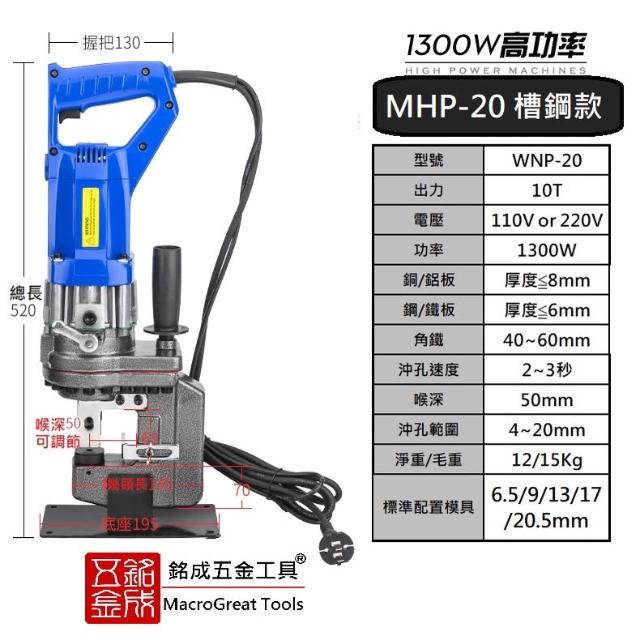 電動油壓沖孔機 手提式 鋼板鑽孔機 洗孔機 打孔機 開孔器 角鋼沖孔機 液壓洗孔機 MHP-20系列