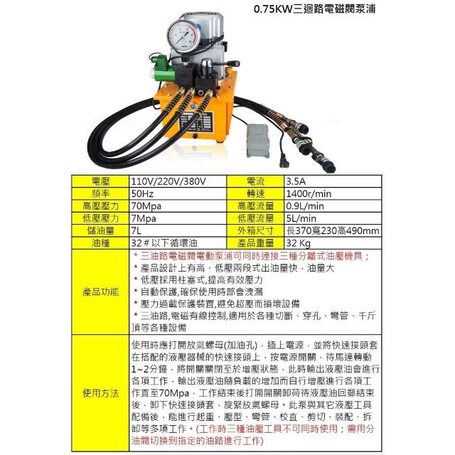三通閥電動油壓泵浦 油壓幫浦 三油路油壓泵站 一台油壓機可接三台油壓器械 (腳踏式/帶電磁閥)