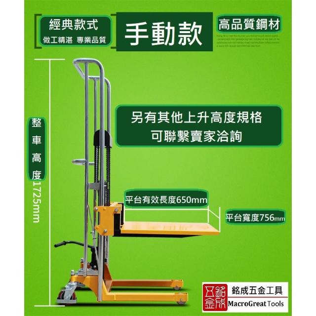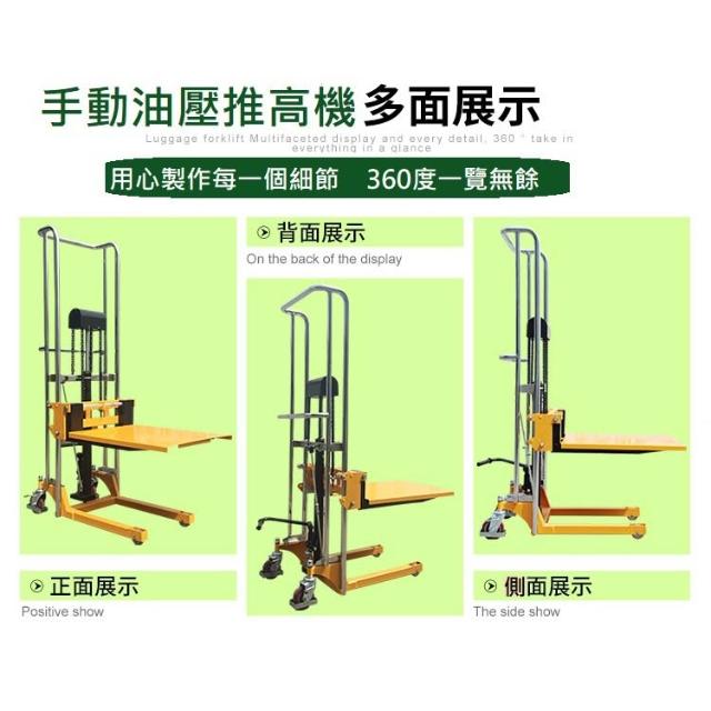 手動油壓推高機 拖板車 倉儲 貨架 升降機 手動搬運車 升高車 液壓升降輕便搬運叉車 裝卸叉車 400Kg 150cm