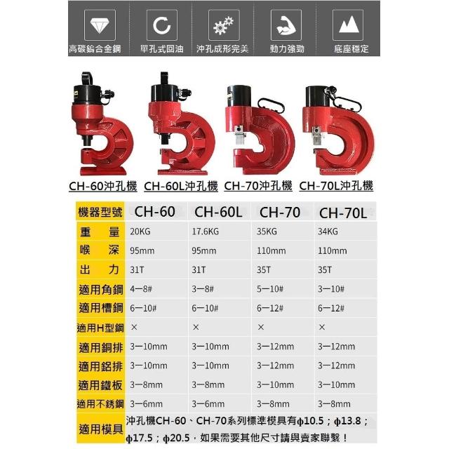 油壓沖孔機 銅排沖孔器 油壓液壓鑽孔機 開孔器 洗孔機 打孔機 CH-70 圓孔 一字孔 模具尺寸齊全