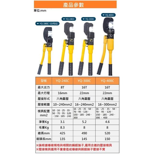 整體式手動油壓鉗 油壓壓著 端子壓接 手動液壓鉗 液壓壓接鉗 壓線鉗 C型頭部 YQ-300C/400C