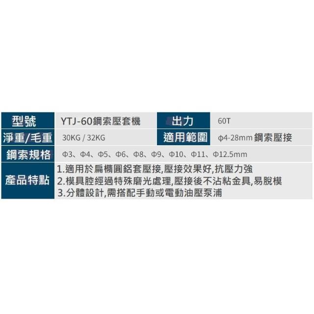 鋼索油壓壓接機 60T 粗鋼絲繩專用液壓壓接機 八字形 橢圓鋁套壓套機 3~12.5mm YTJ-60 (不含模具)