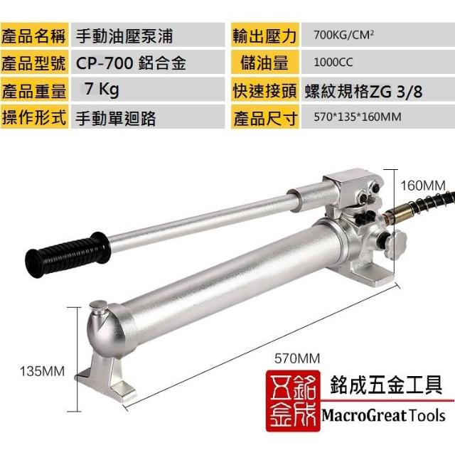 手動油壓泵浦 油壓幫浦 鋁合金 高壓泵浦 超輕油壓泵 CP-700-鋁合金 ZG 3/8 快速接頭