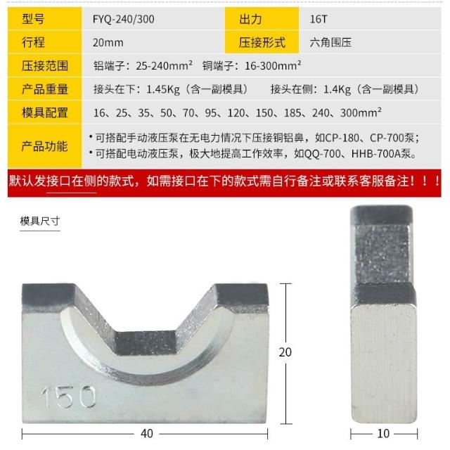分體式油壓端子壓接鉗 液壓端子壓接鉗 油壓壓接鉗 壓線鉗 16-300mm 銅鋁端子壓接工具 FYQ-300