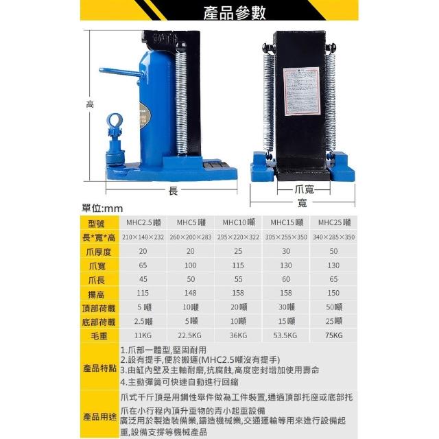 銘成五金工具 爪式油壓千斤頂 液壓千斤頂 起重工具 鐵人 爪式千斤頂 液壓起道機 低位千斤頂 頂部5T/10T/20T