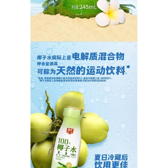 零食星天地春光椰子水100%天然運動飲料海南特產NFC椰青水戶外聚餐飲品果汁