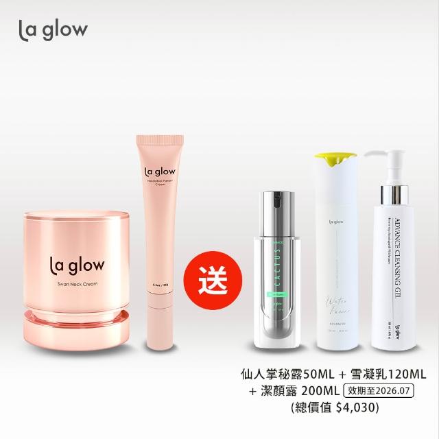 La glow2+3逆齡組_天鵝頸緻霜50g+法令紋撫紋霜25g 【送】仙人掌秘露50ml+雪凝乳+潔顏露200ml