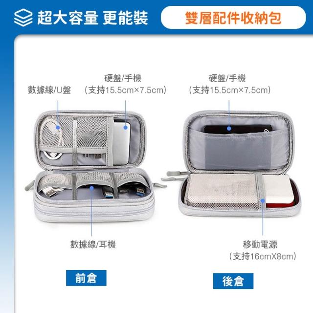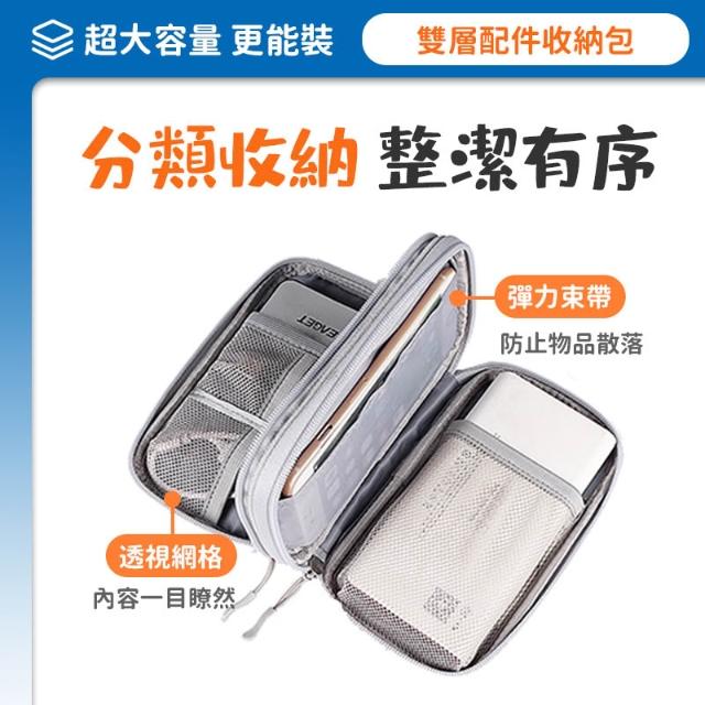 台灣現貨💥雙層收納包 旅行收納袋 數據線收納包 配件整理包 充電寶收納包 耳機線收納包