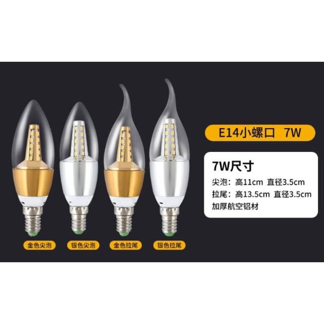 [ACB照明] 現貨 超高亮度拉尾/尖頭LED E14 7W燈泡 水晶燈專用