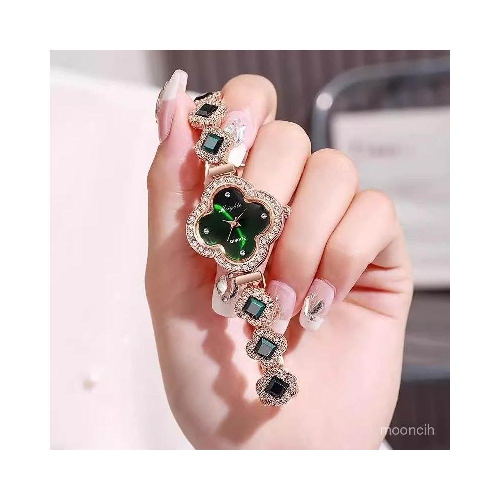 偉偉有道 手錶女款精緻四葉草手錶鑲鑽手鏈潮流時尚小錶盤氣質顯白女士手錶