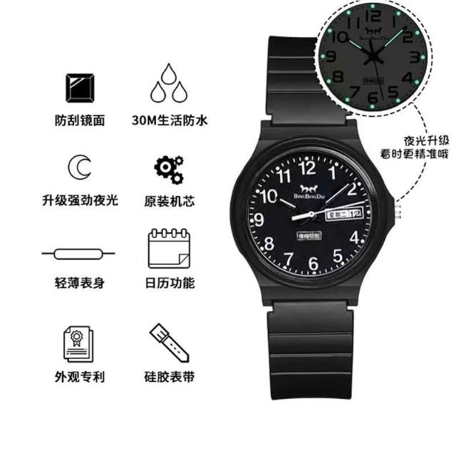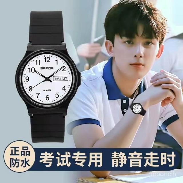 偉偉有道 初高中學生手錶男百搭簡約夜光考試靜音手錶男女孩雙日厤防水防摔