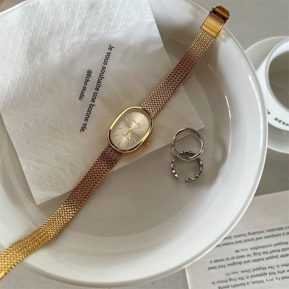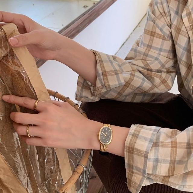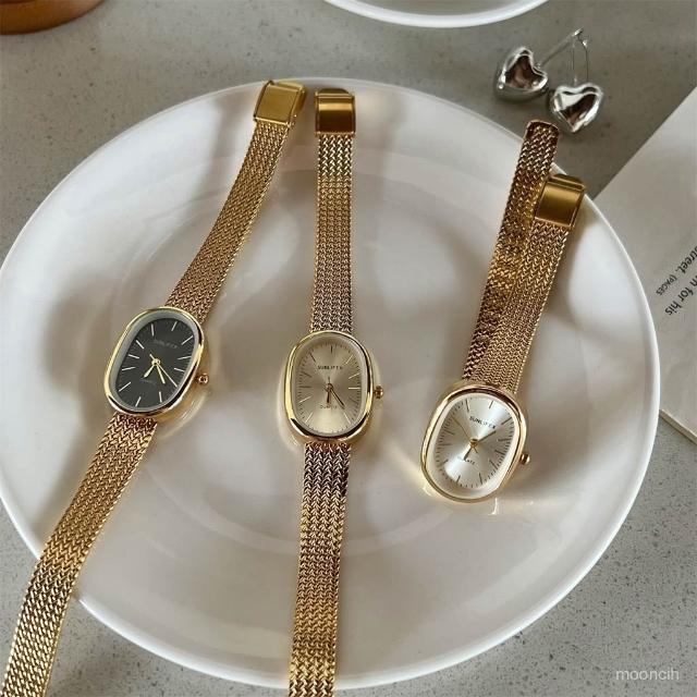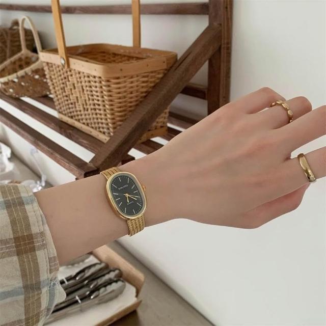 偉偉錶錶 輕奢金色手錶女ins小衆設計複古時尚高級感精緻防水橢圓形小金錶