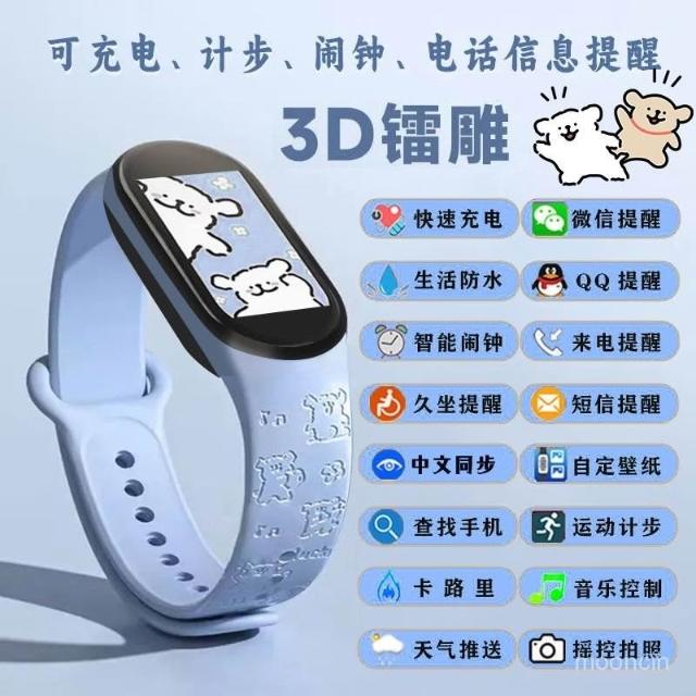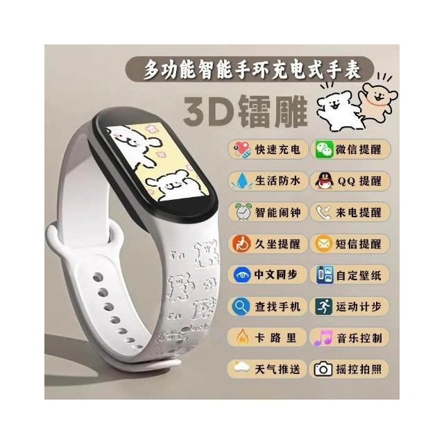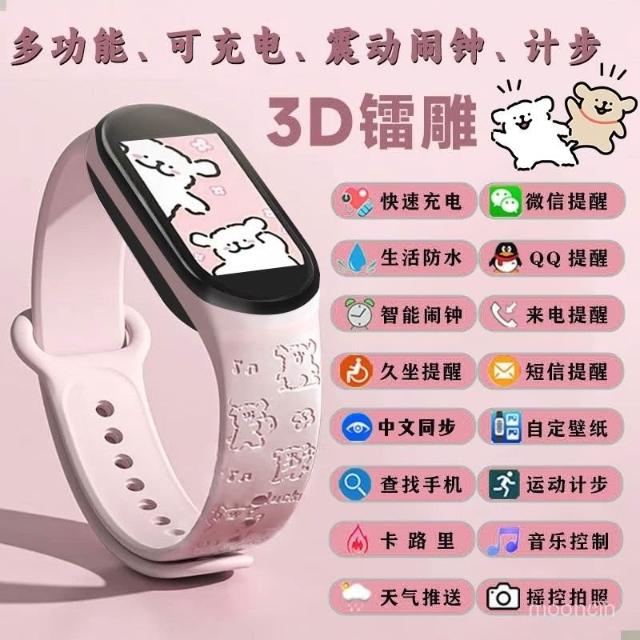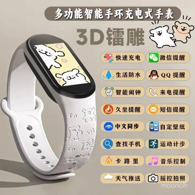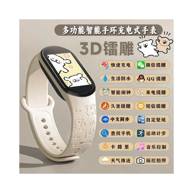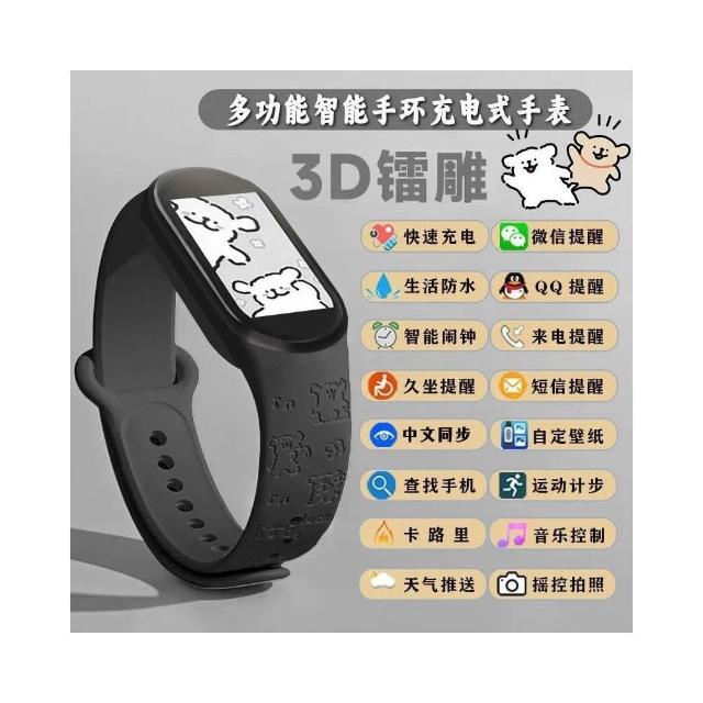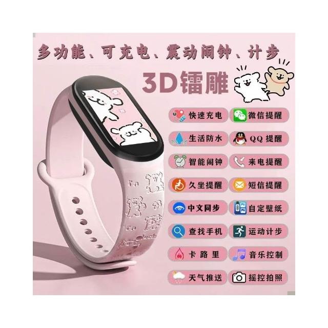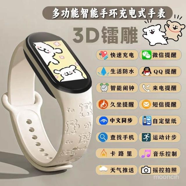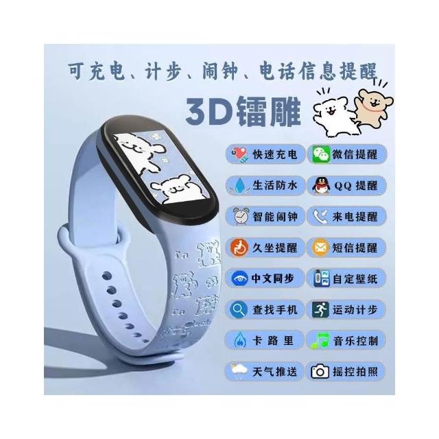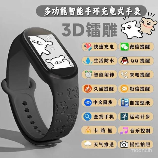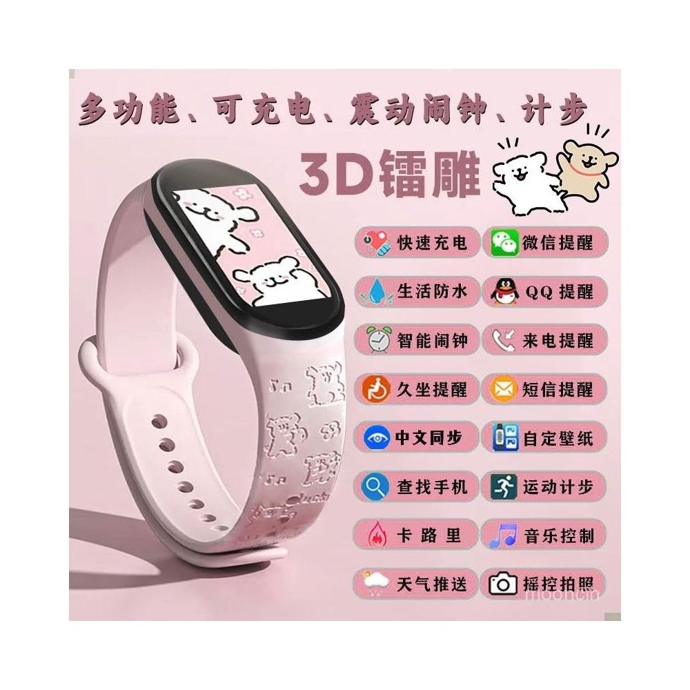 偉偉錶錶 藍牙手機通用綫條小狗智能手環運動計步鬧鍾防水情侶男女學生手錶