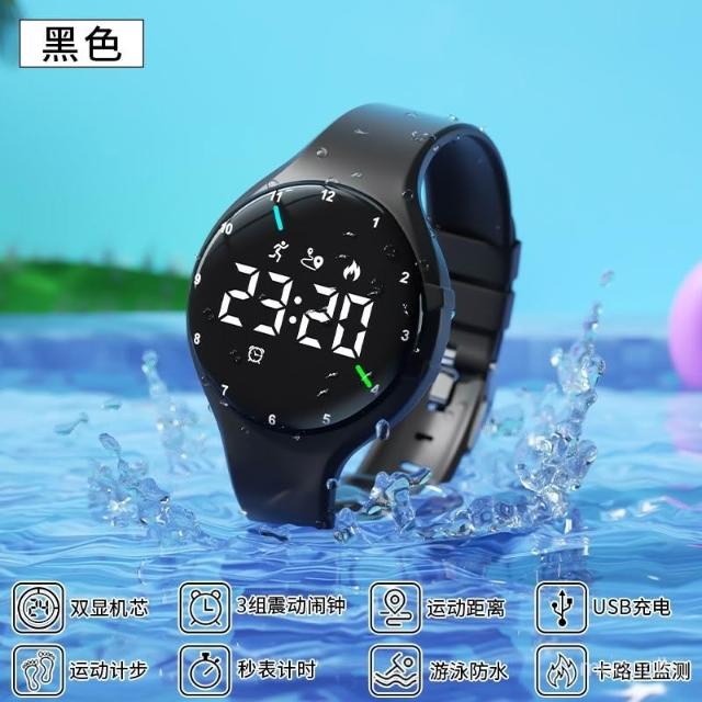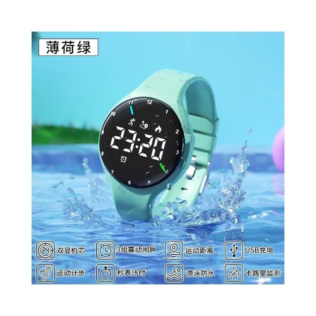 偉偉錶錶 遊泳可戴防水手錶男生青少年耐用2024款運動計時夜光雙顯電子手錶
