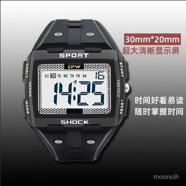 偉偉錶錶 TPW50米遊泳防水大數字運動電子手錶夜光男士青少年多功能錶時尚