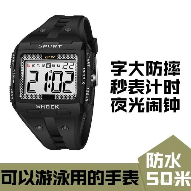 偉偉錶錶 TPW50米遊泳防水大數字運動電子手錶夜光男士青少年多功能錶時尚