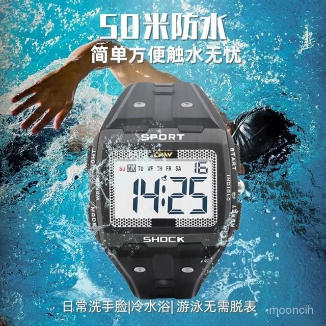 偉偉錶錶 TPW50米遊泳防水大數字運動電子手錶夜光男士青少年多功能錶時尚