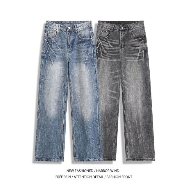 26新款美式高街閃電裂紋潮流微喇牛仔褲B315-K25425