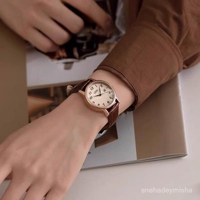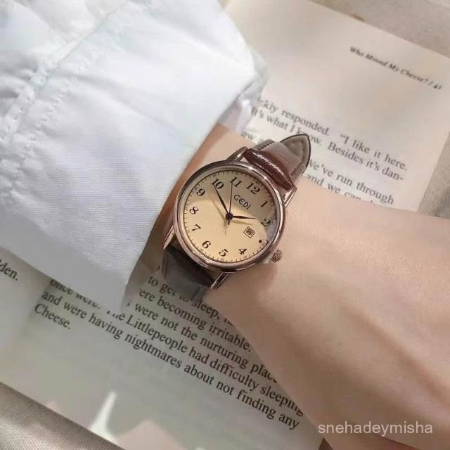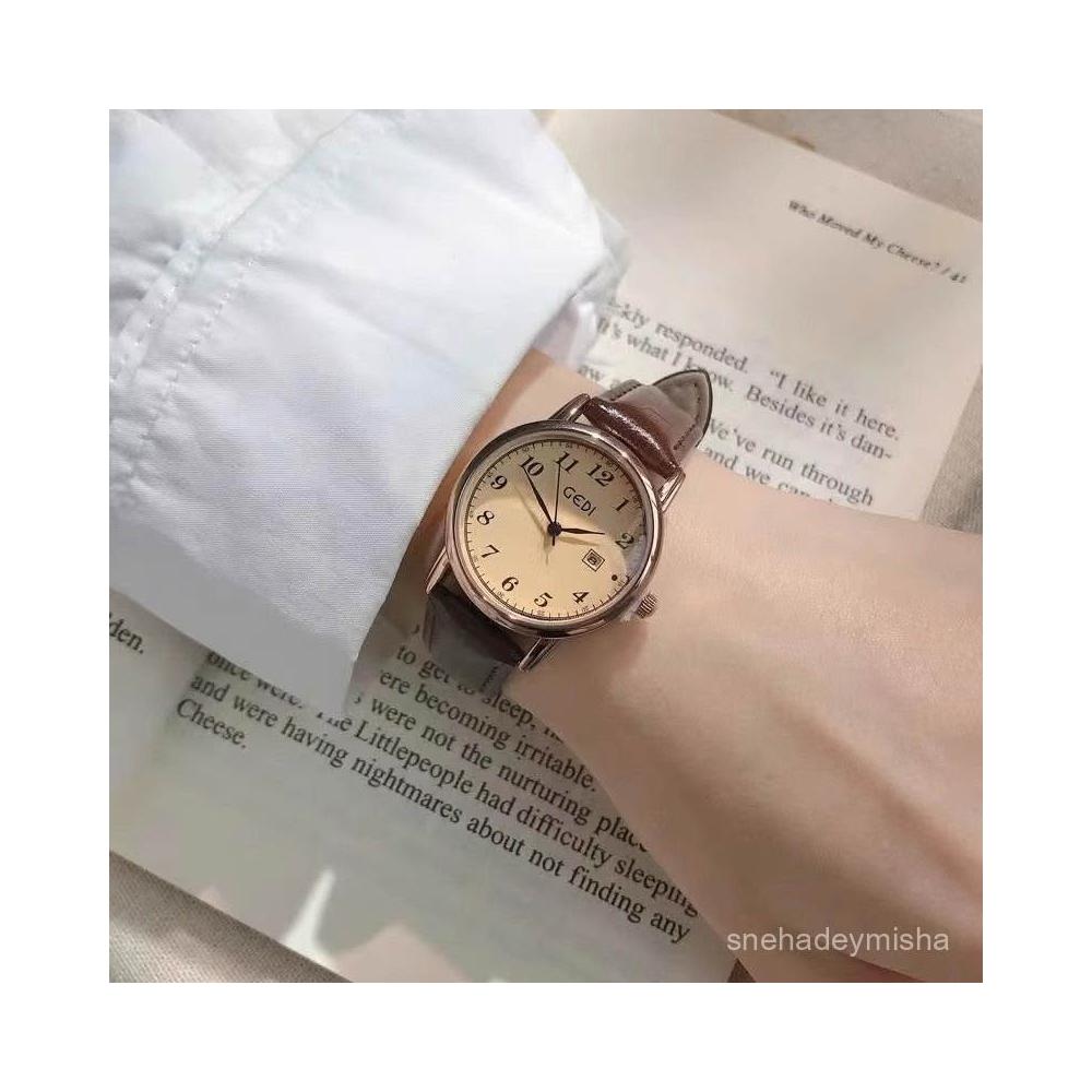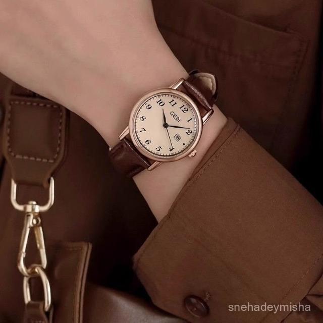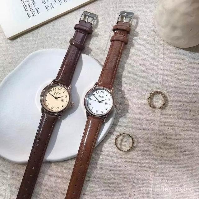 小李甄選 【1780人收藏】靜音手錶女正品英倫風學院青春韓係複古學生考試專用皮帶顯白日厤