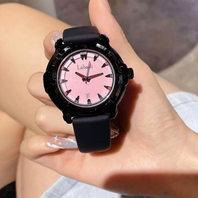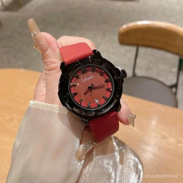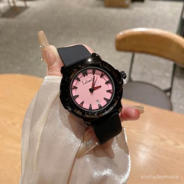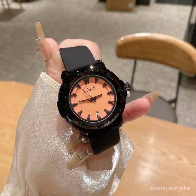 曉君精選 小衆手錶粉色甜酷風硅膠錶帶時尚個性潮流顯白女士手錶情侶大錶盤