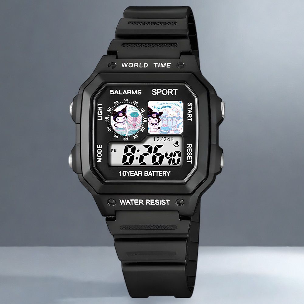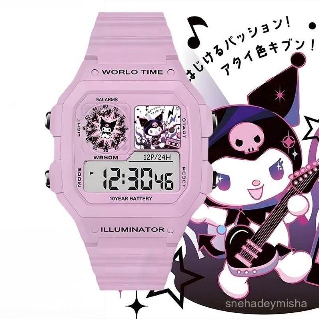 小君精品 庫洛米卡通學生二次元智能運動夜光可計時鬧鍾防摔電子手錶禮物