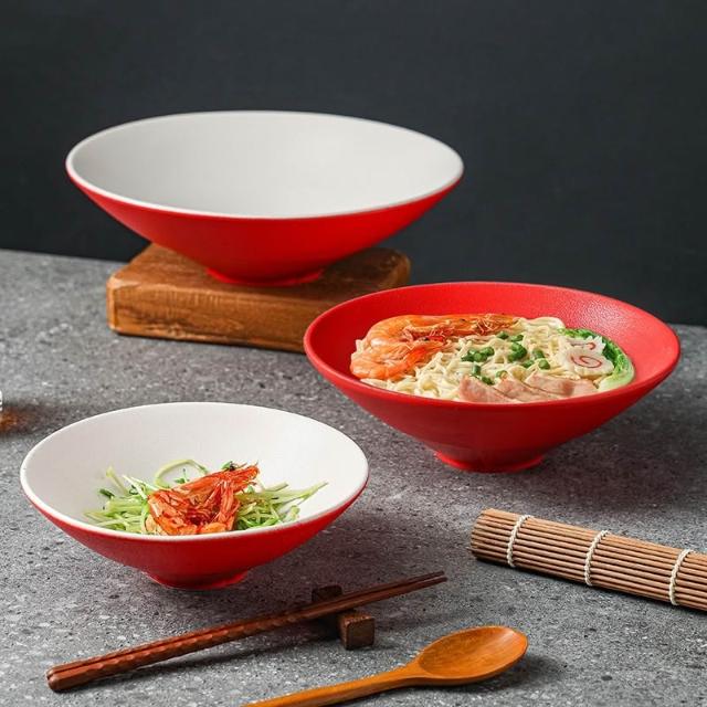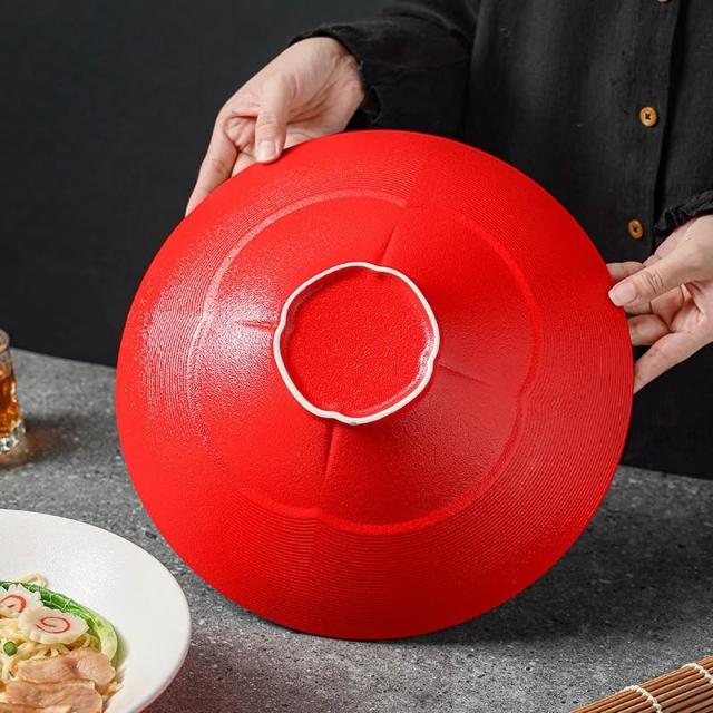 新中式 大紅 喜慶 傳統色 復古 湯碗 麵碗 拉麵碗 湯麵碗 大碗 陶瓷 8吋 紅色 喜慶 石紋