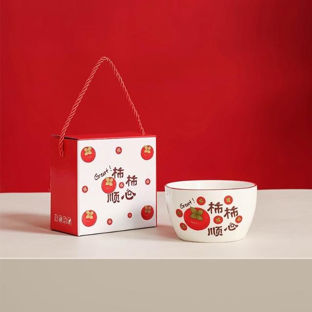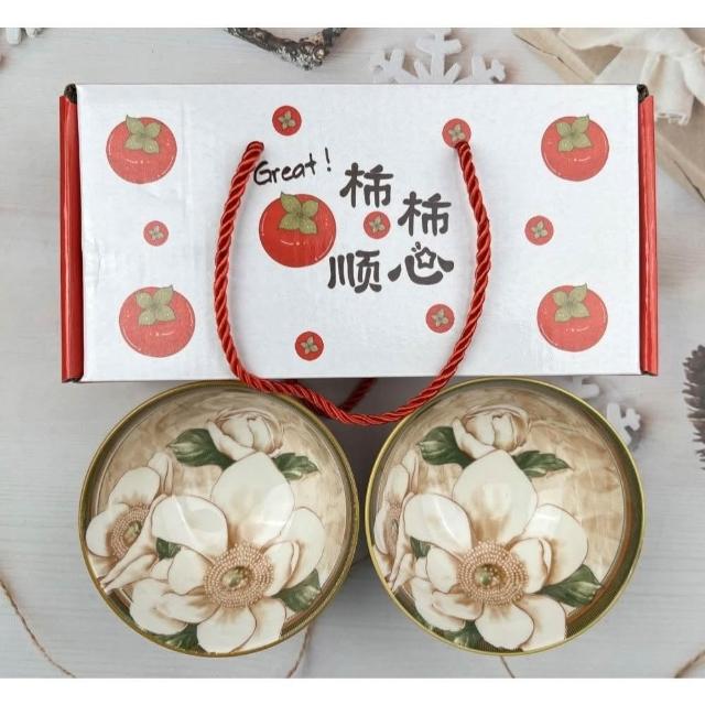 台灣現貨 春節 尾牙 春酒 商務 柿柿順心 禮盒 兩碗禮盒 陶瓷 碗 飯碗 湯碗 滿月 喬遷 慶生 商務 尾牙 抽獎