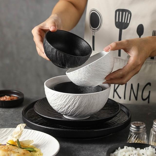 石紋 黑白 陶瓷 碗碟 餐具 家用 高檔 碗 盤子 簡約 陶瓷碗 陶瓷盤 高級感 商用 餐廳
