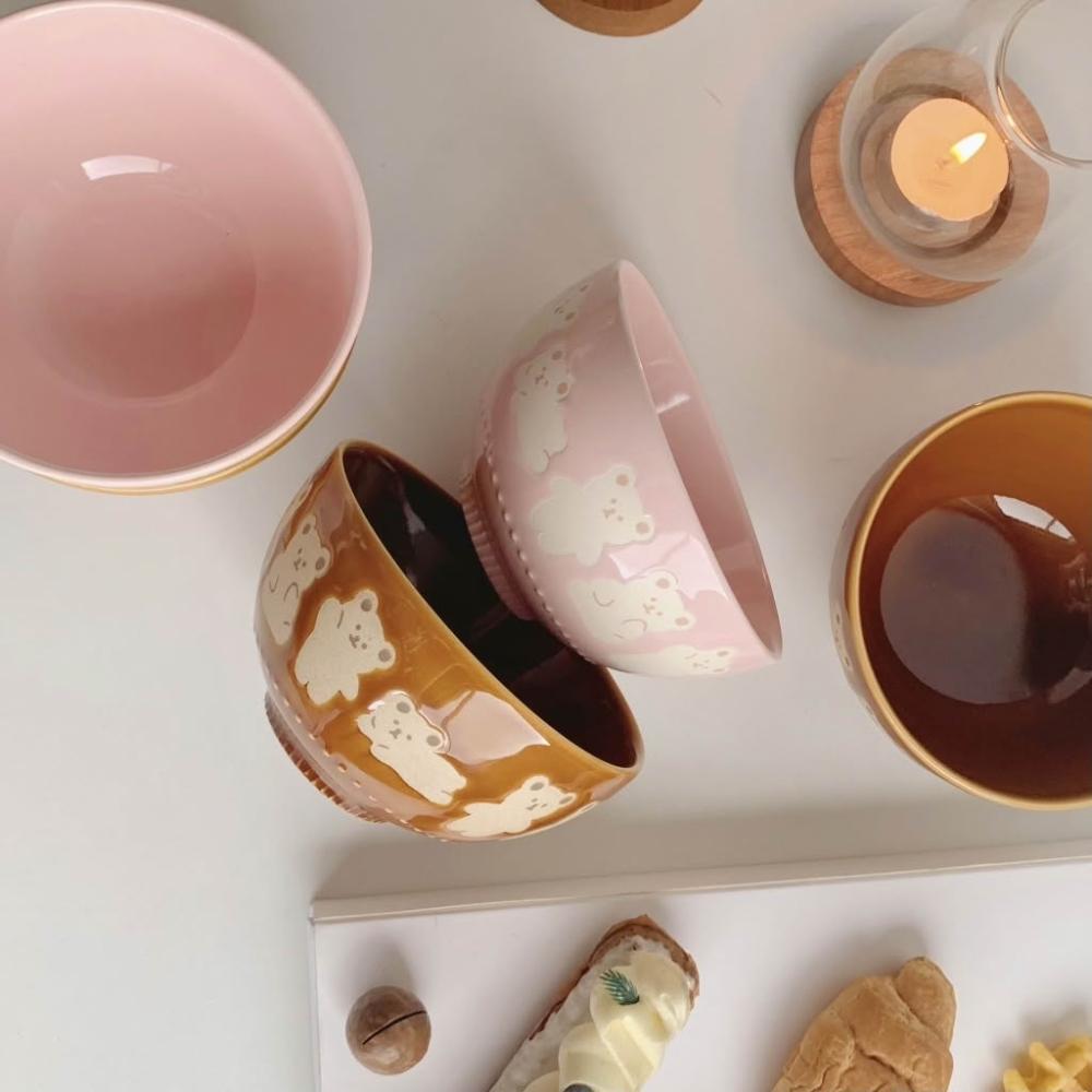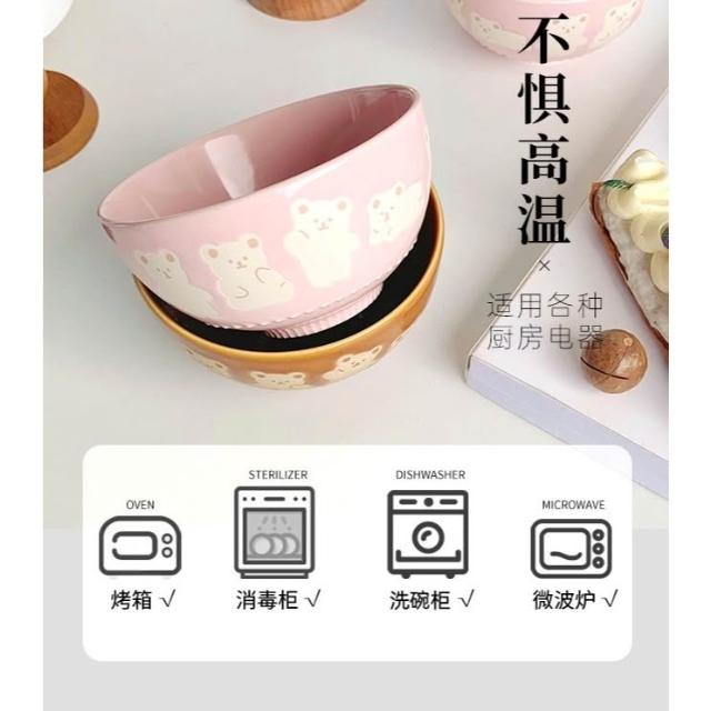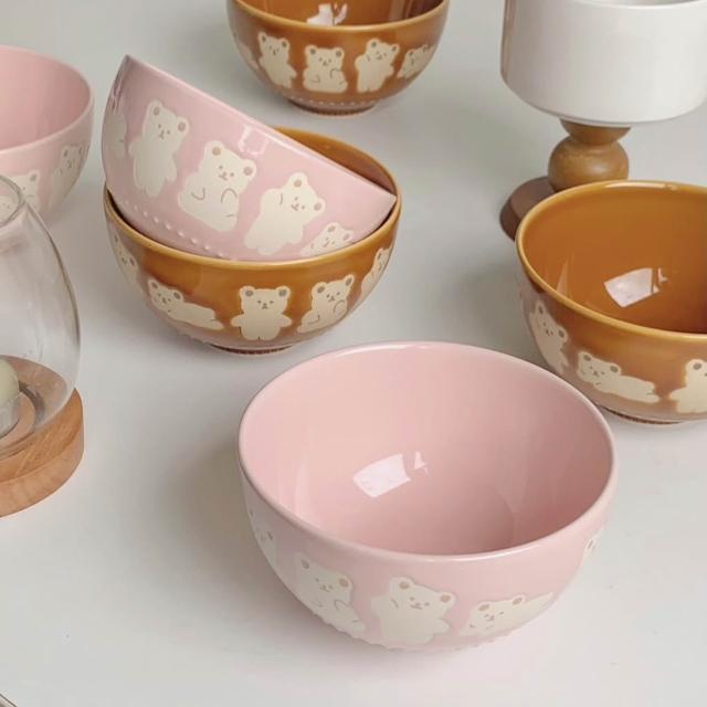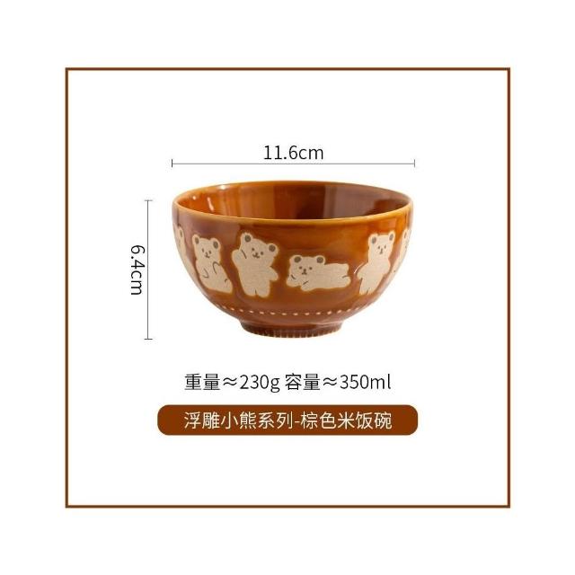 台灣現貨 陶瓷 飯碗 湯碗 餐具 日式 小熊 浮雕 米飯碗 4.5吋 甜品碗 可愛 Q版 熊 小碗 顏值