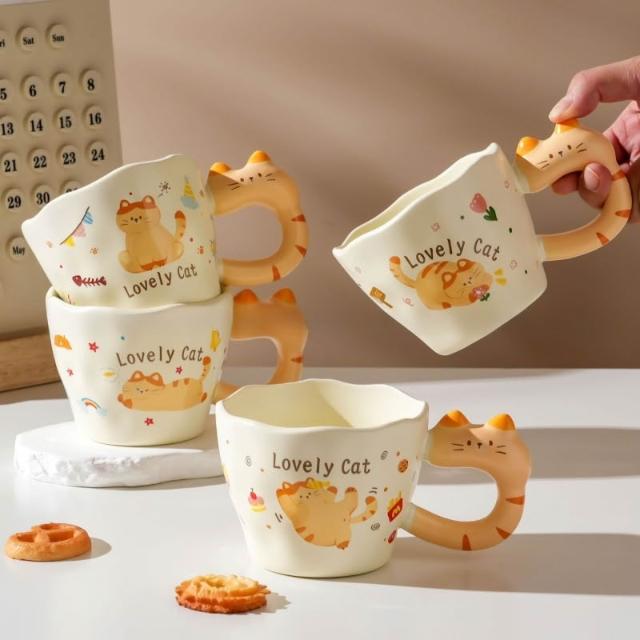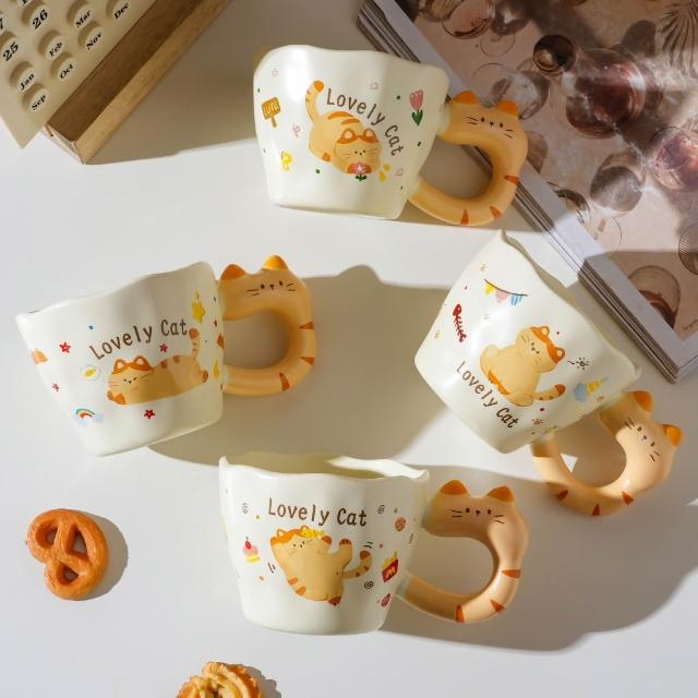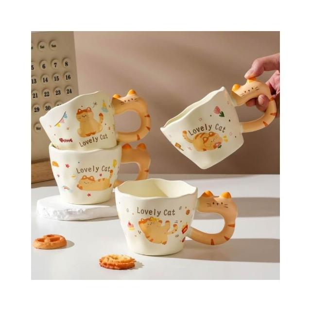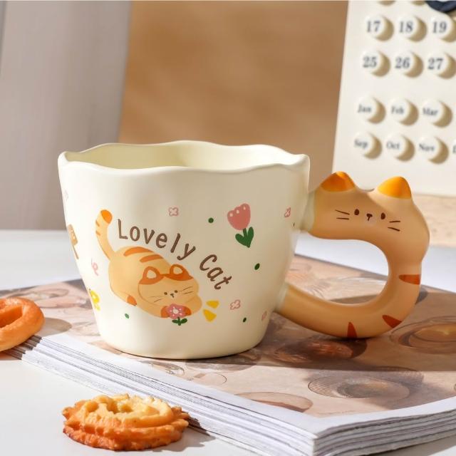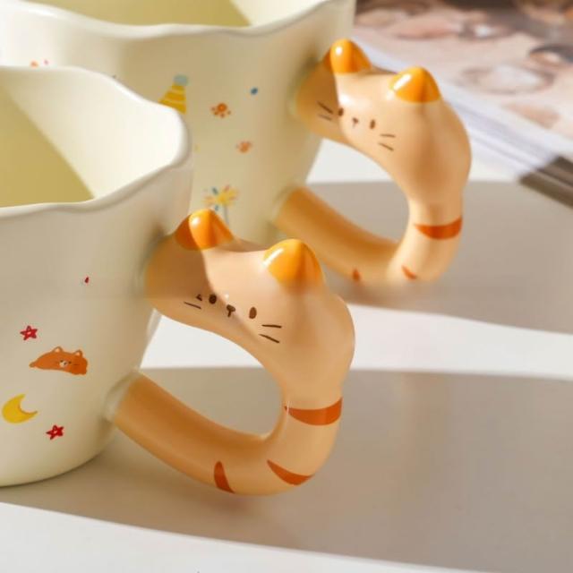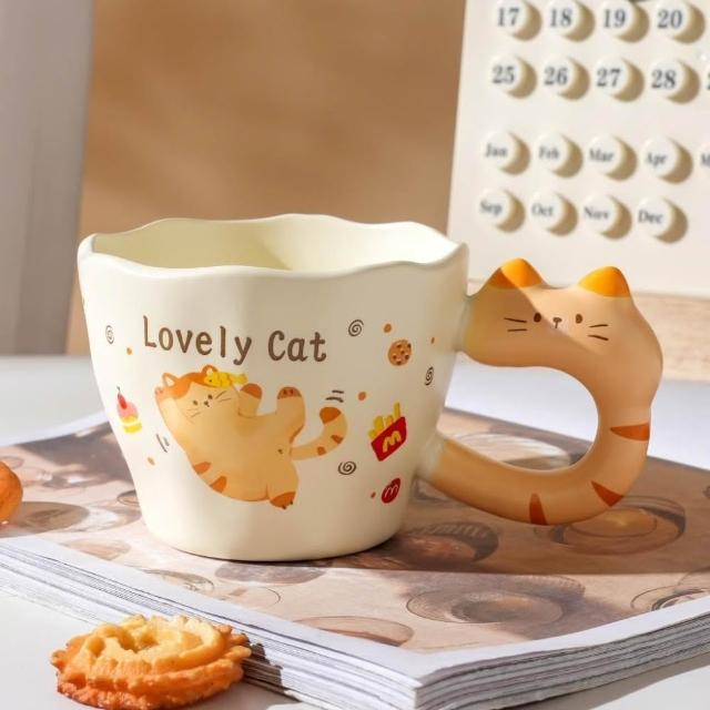 陶瓷 貓咪圖案 貓咪把手 造型馬克杯 可愛 萌趣 陶瓷馬克杯 水杯 茶杯 沖泡 奶茶杯 牛奶杯 咖啡杯 交換禮物 禮品