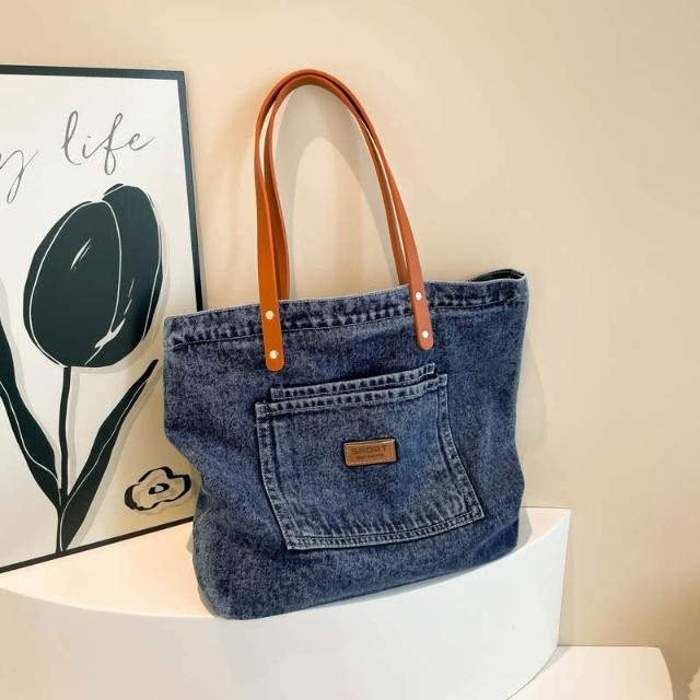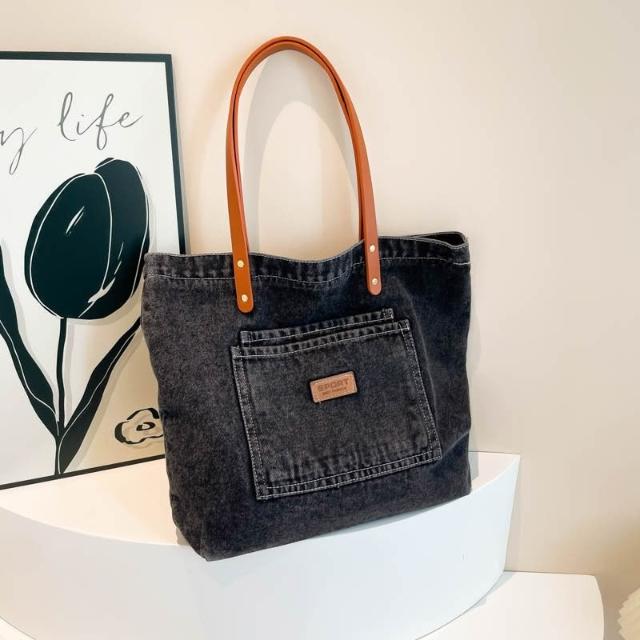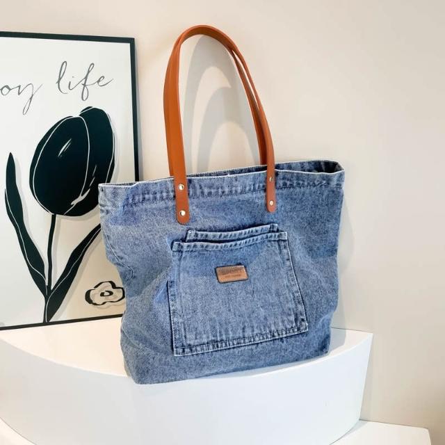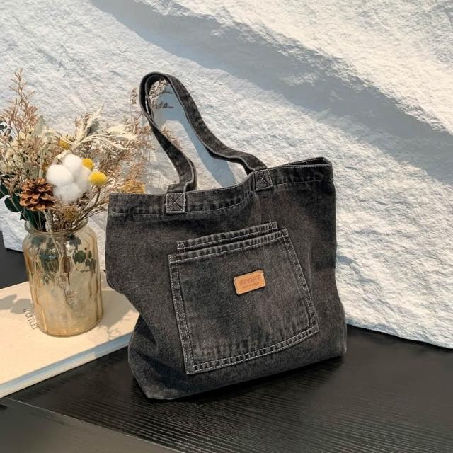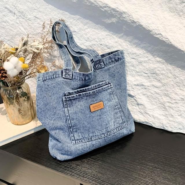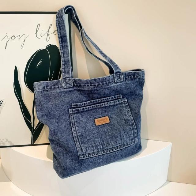 牛仔 帆布 單肩包 手提包 手提袋 大容量 購物袋 小眾 文藝 托特包 休閒 手提包 百搭 逛街 休閒包