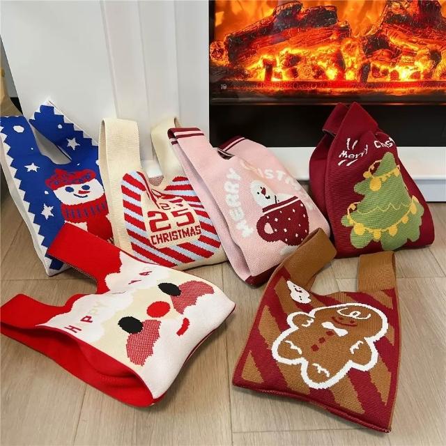 ((厚款)) 重磅針織袋 加厚 加重 針織包 休閒包 日常 交換禮物 聖誕節 平安夜 雙面有圖 聖誕系列